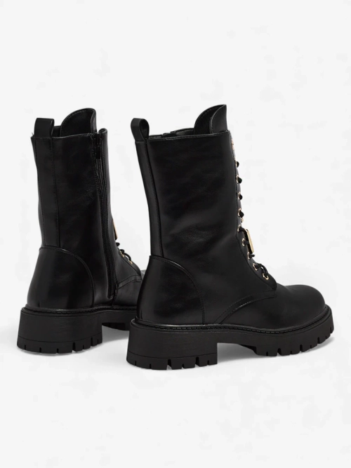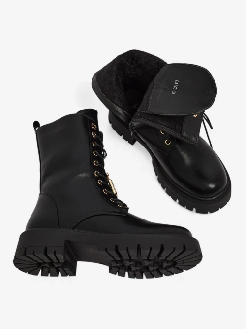 - Жіночі ботильйони з екошкіри, із замком та декоративною шнурівкою та круглим носком, додатково утеплені хутром – сучасність, зручність та стиль в одному.