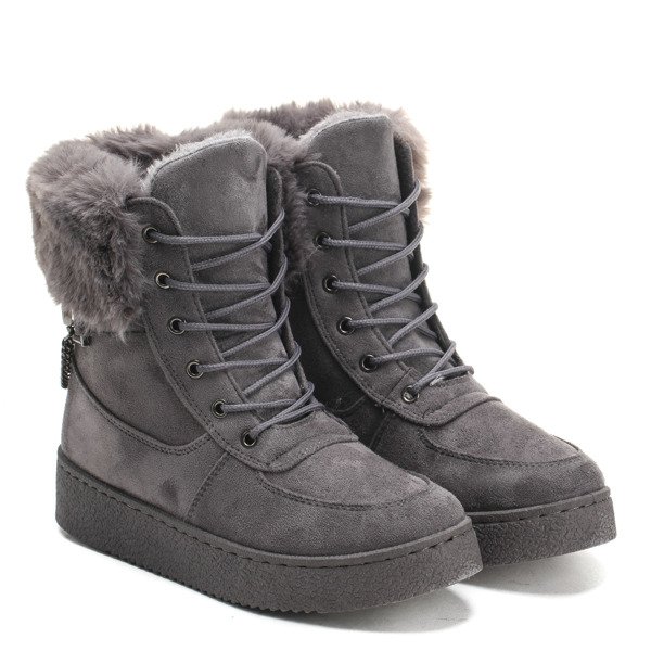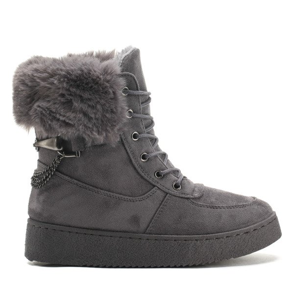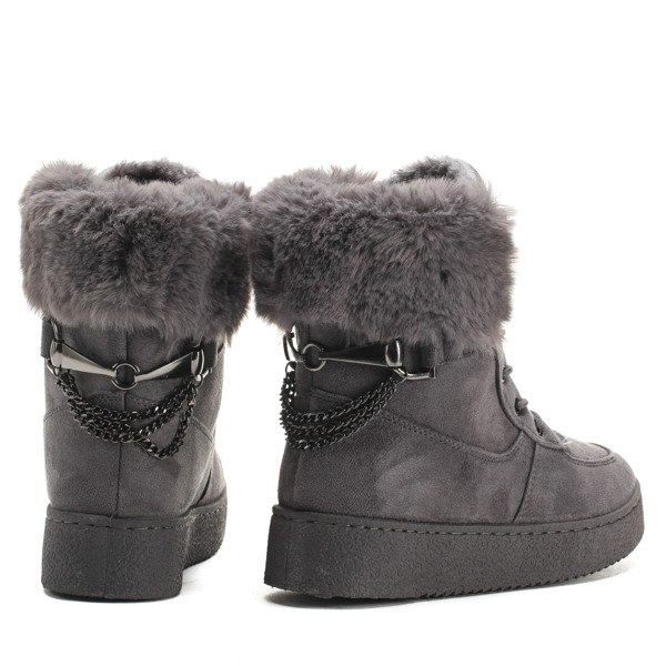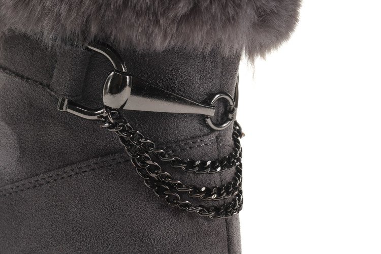 • Sznurowane botki a'la sportowe z grubym futerkiem od środka zapewnią Ci ciepło w chłodniejsze dni. Buty posiadają ozdobne futerko na wysokości cholewki oraz srebrną klamrę z delikatnym łańcuchem. Solidne wykonanie, bardzo wygodne i stabilne.