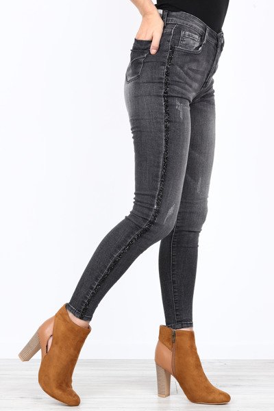 Długie, czarne jeansy z kamyczkam Andelei- Obuwie
