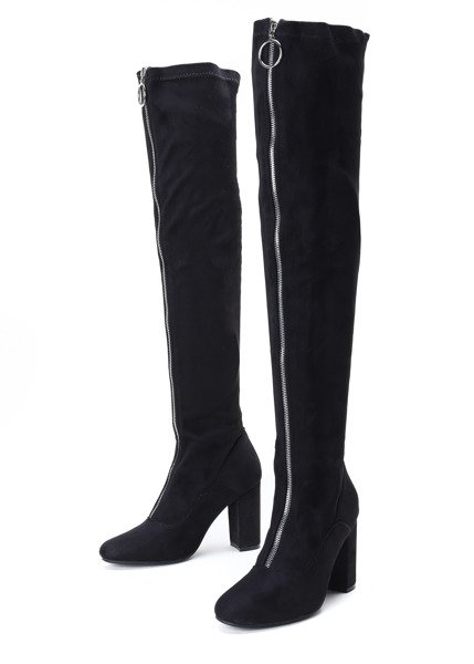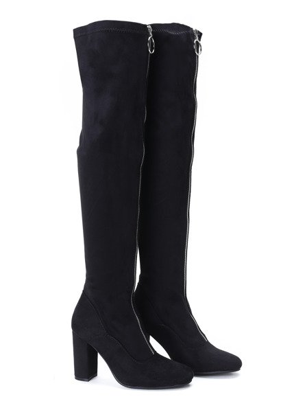 • Елегантні довгі черевики на стійці з екологічної шкіри замші. Модель застібається на блискавку спереду. Взуття ідеально підійде для повсякденного та вечірнього одягу.