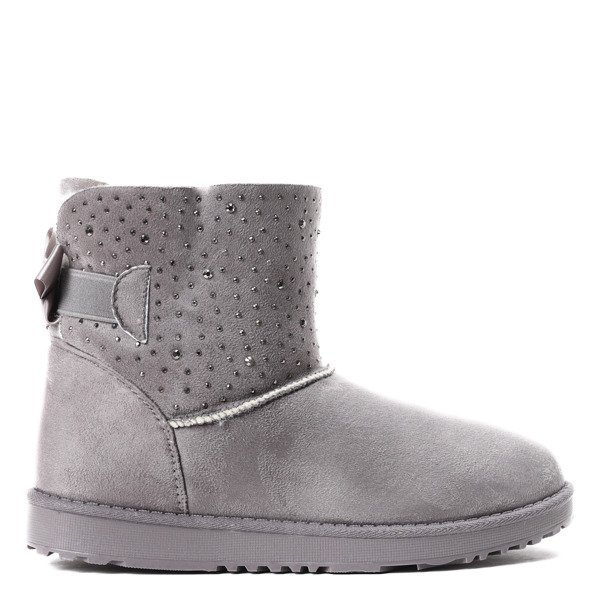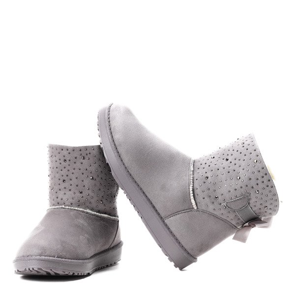 - Rewelacyjne mukluki z grubym futerkiem od środka zapewnią Ci ciepło i komfort w chłodniejsze dni. Cholewka z przodu ozdobiona dżetami, a z tyłu urocza kokardka. Solidnie wykonane i bardzo wygodne. Nadają się do wielu stylizacji.
