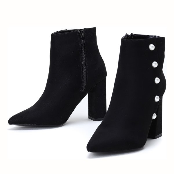 Чорні черевики з перлами на високій стійці Майя - Взуття