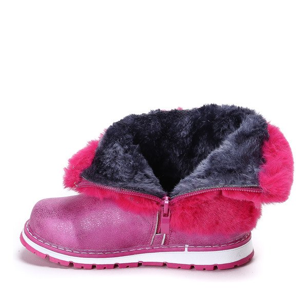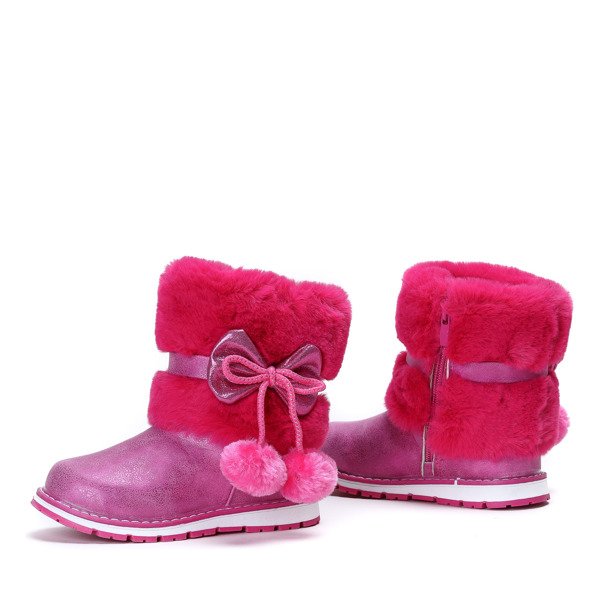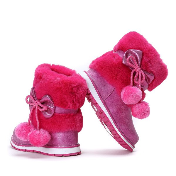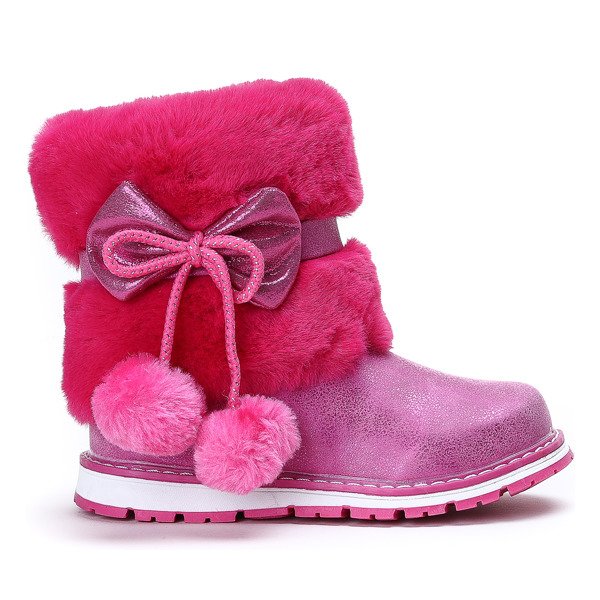 - Niesamowicie wygodne botki wykonane ze skóry ekologicznej z błyszczącym wykończeniem. W środku posiadają ocieplenie w formie futerka. Model zapinany na rzepy i suwak. Cholewka zdobiona z boku kokardką i pomponami.