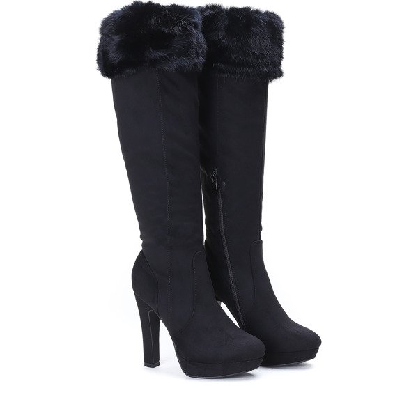 Czarne kozaki z futerkiem Happy Now - Obuwie