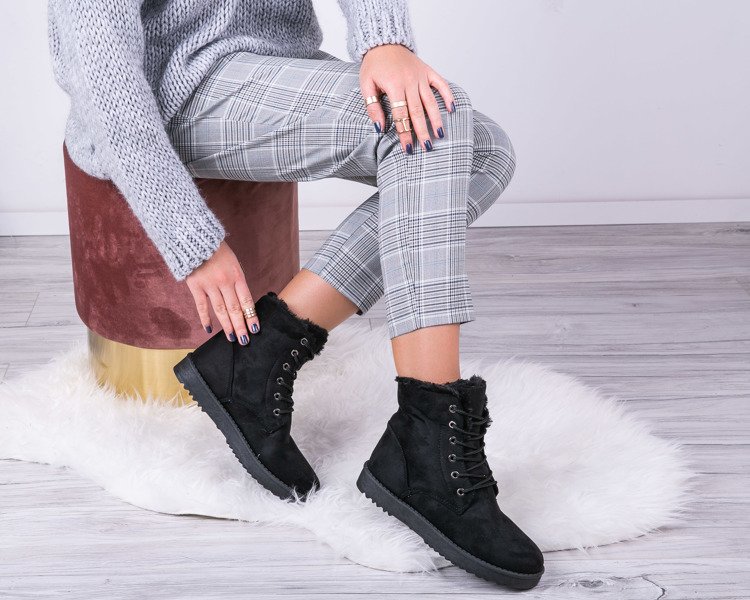 - Niesamowicie ciepłe botki wykonane ze skóry ekologicznej zamszowej. W środku posiadają ocieplenie w formie futerka. Model sznurowany. Solidnie wykonane i wyjątkowo wygodne dzięki grubej podeszwie. Świetnie się sprawdzą na co dzień!