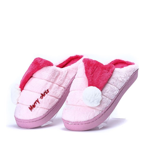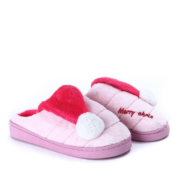 Jasnoróżowe kapcie z pomponikiem Santa- Obuwie