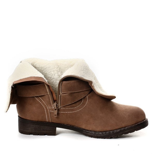 Ciemnobeżowe botki z kożuszkiem - Obuwie