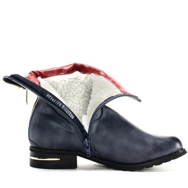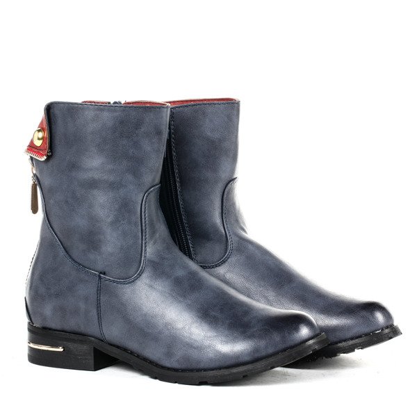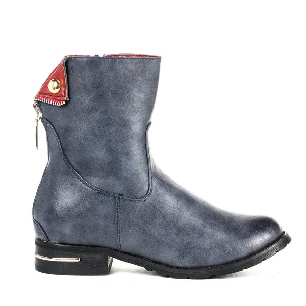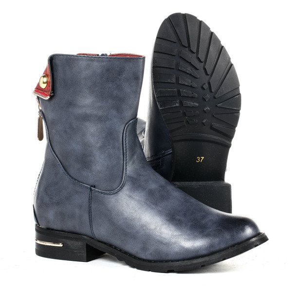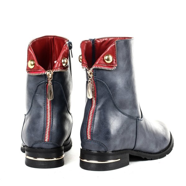 - Wysokie botki wykonane ze skóry ekologicznej. Z tyłu metalowy, ozdobny suwak. Cholewka wywinięta z tyłu w kontrastowym kolorze. Obcas nie wymaga wymiany fleków. Idealne dla modnych kobiet.