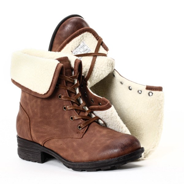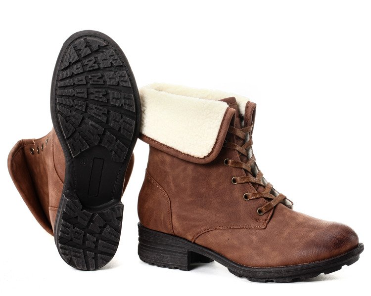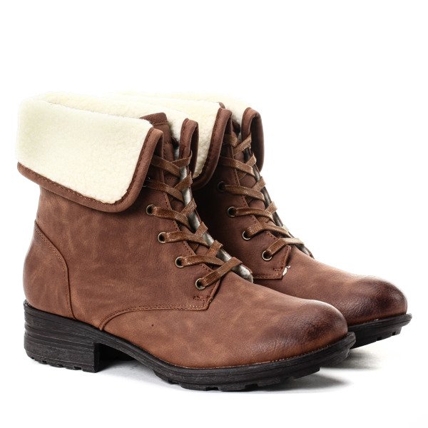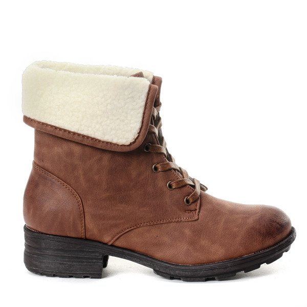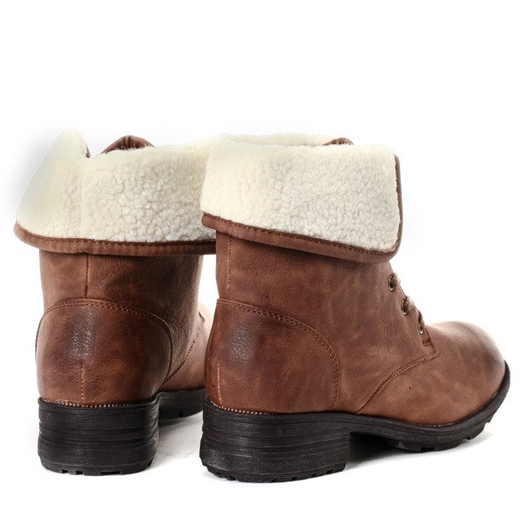 Brązowe workery z kożuszkiem - Obuwie