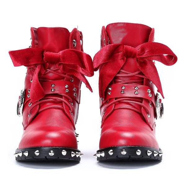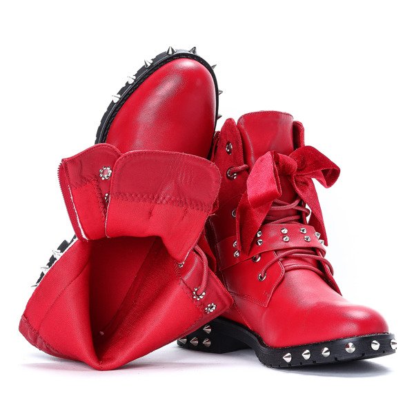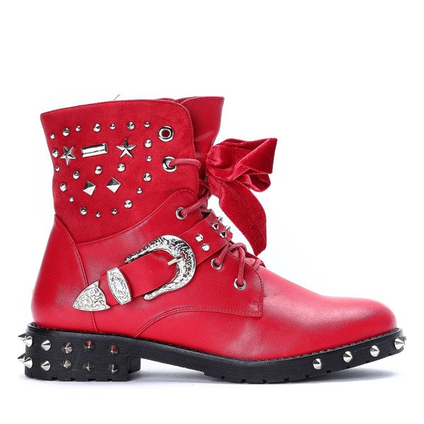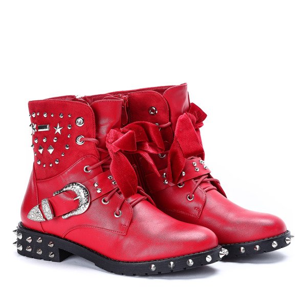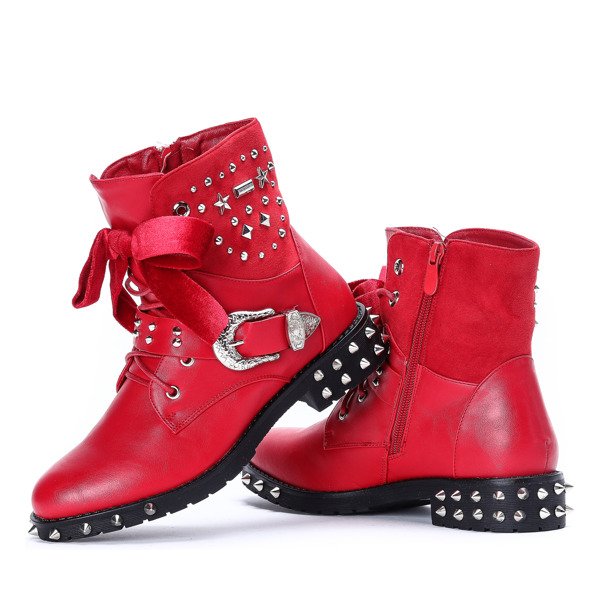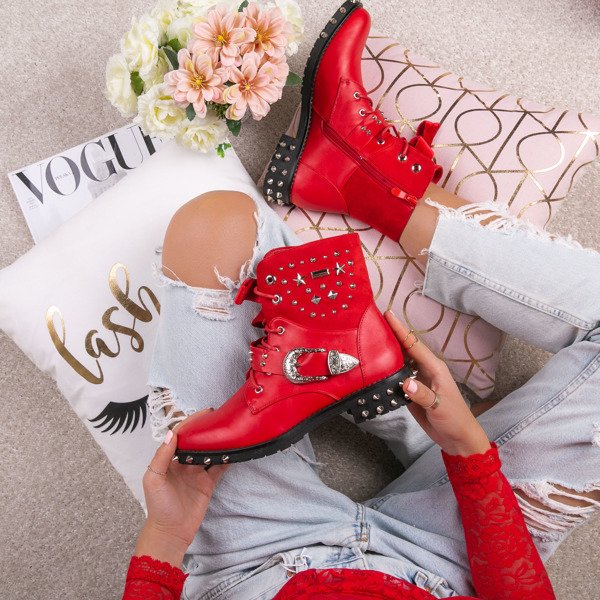 Czerwone workery z ćwiekami Adelynn - Obuwie